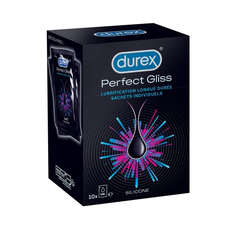Découvrez les 10 Sachets de Gel Lubrifiant Durex Perfect Gliss 5 ml et ainsi profiter d’une lubrification qui dure jusqu’à 3 fois plus longtemps qu’un lubrifiant classique.