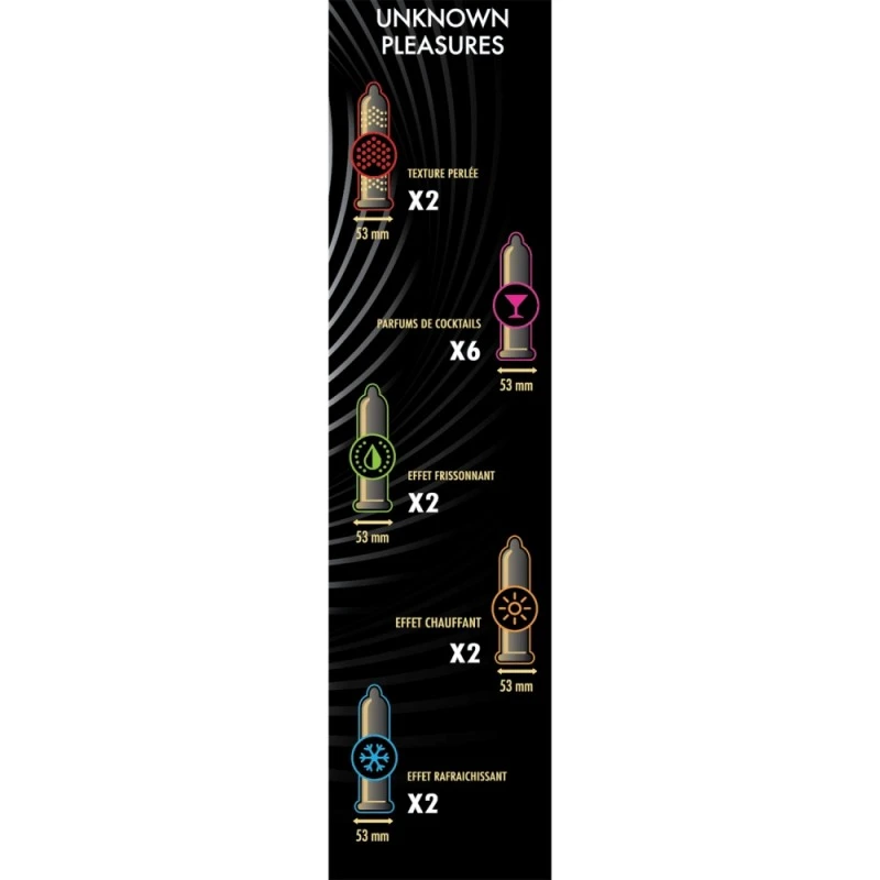 Découvrez les Préservatifs Skyn Unknown Pleasures Boîte de 14 de Manix et profitez de plaisirs variés grâce aux 5 modèles de préservatifs proposés.