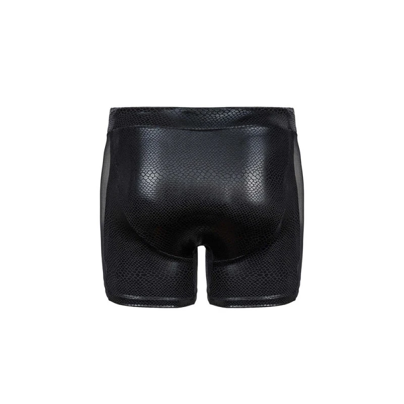 Ce short de bain moulera vos atouts à la perfection grâce à sa coupe près du corps. Son effet wetlook écailles de serpent vous offrira un look sensuel, idéal pour ajouter une touche d’érotisme sauvage pour vos séances de bronzage sur la plage ! Des bandes de maille transparentes sur les côtés vous donneront une allure affirmée pleine de charme… De quoi donner des coups de chaud ! Enfin, un lacet sur la ceinture vous permettra d’ajuster votre maillot de bain, de sorte à profiter d’un port confortable.