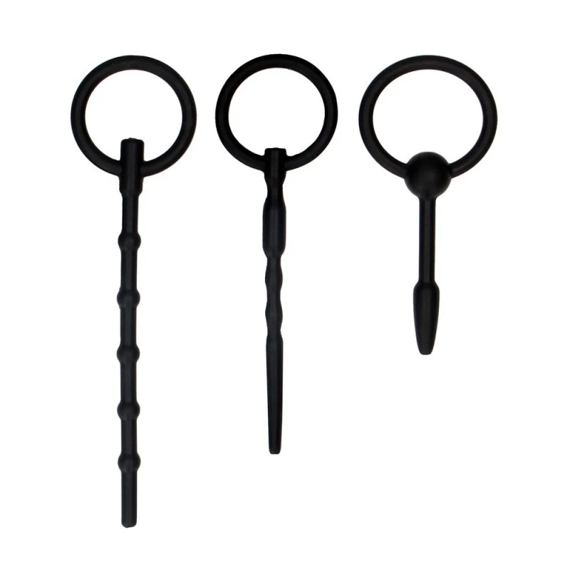 Le Kit est composé de 3 Plugs en silicone doux et hypoallergénique sans phtalates de tailles et de formes différentes. Ils sont qui plus est souple afin de convenir au mieux à votre corps. À l’extrémité se trouve un anneau pour vous aider à l’insérer et à le retirer ce qui empêchera le sperme de sortir lors de l’éjaculation ! De quoi vous former aux jeux de la douleur !