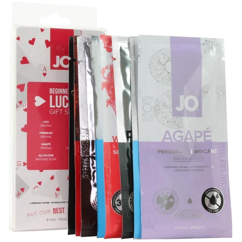Ce kit renferme 8 échantillons de 10 ml des produits les plus célèbres de la marque System JO ! Grâce à ce pack, vous pouvez découvrir les lubrifiants classiques, avec un effet refroidissant, à base d’eau ou de silicone, des gels de massages aromatisés afin de profiter encore plus des moments intimes avec votre partenaire !