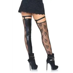 LEG AVENUE Bas Mi-Cuisse Wetlook & Dentelle Noirs Sans Pied