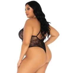 LEG AVENUE Body Dentelle Florale Laçage Noir GT