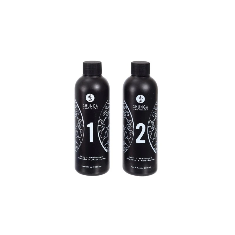 Le coffret contient 2 bouteilles de gel que vous devrez mélanger pour avoir 4 litres de massage soyeux et chaud.