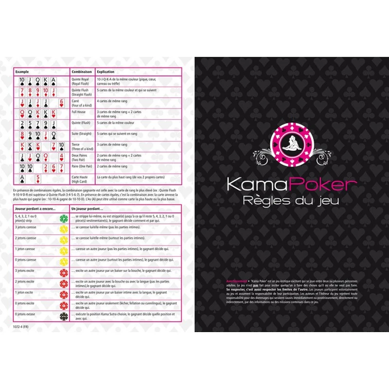 Le but du jeu est de faire vivre à 2 ou plusieurs joueurs une aventure érotique unique en son genre. Il n’y a pas besoin d’être un joueur de poker averti car dans le Kama Poker, on ne gagne pas des montagnes d’argent, mais de l’érotisme et de la passion. Le jeu fait grimper l’excitation à travers ses différentes étapes. On passe ainsi du « Strip » à la « Caresse » pour atteindre l’extase finale à la fin de la partie.